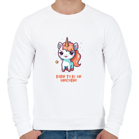 1 kép PRINTFASHION Born to be an unicorn - Férfi pulóver - Fehér