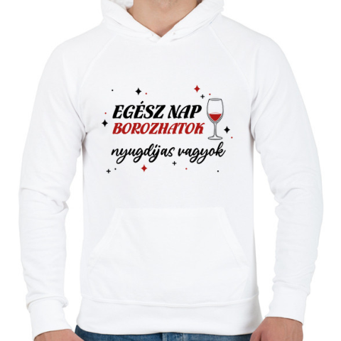1 kép PRINTFASHION Borozhatok - Nyugdíjas - Férfi kapucnis pulóver - Fehér