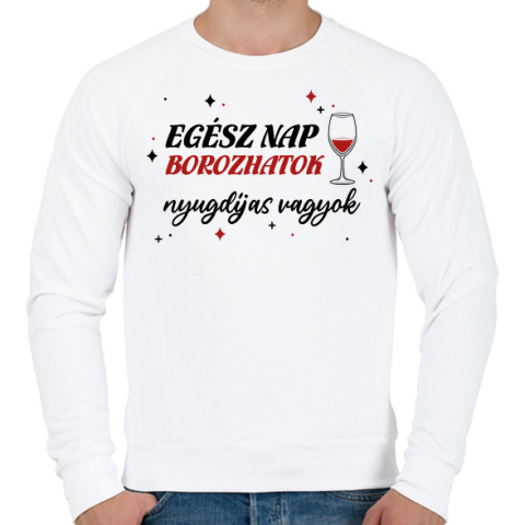 1 kép PRINTFASHION Borozhatok - Nyugdíjas - Férfi pulóver - Fehér