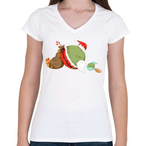 1 kép PRINTFASHION Borsó Mikulás - Női V-nyakú póló - Fehér