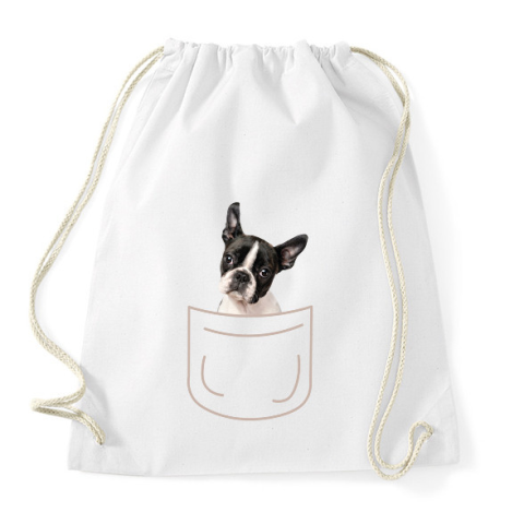 1 kép PRINTFASHION Boston terrier kölyök zsebben - Sportzsák, Tornazsák - Fehér