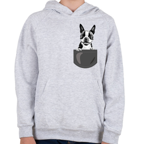 1 kép PRINTFASHION Boston Terrier - zseb - Gyerek kapucnis pulóver - Sport szürke