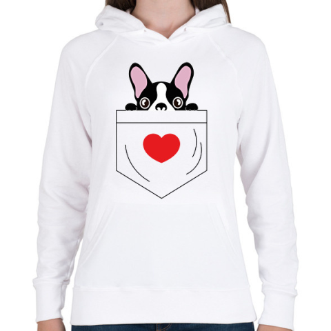 1 kép PRINTFASHION Boston Terrier zsebben - Női kapucnis pulóver - Fehér