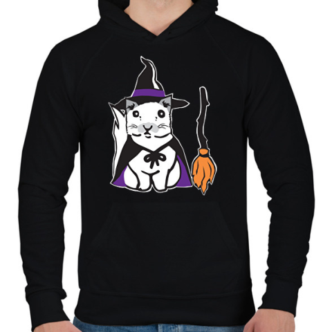 1 kép PRINTFASHION boszorkány cica - Férfi kapucnis pulóver - Fekete