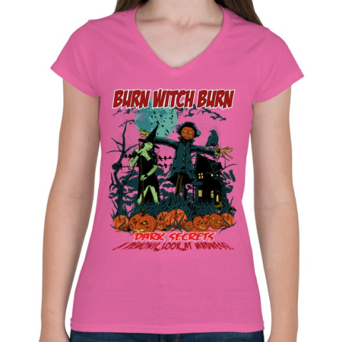1 kép PRINTFASHION Boszorkányégetés - Női V-nyakú póló - Rózsaszín
