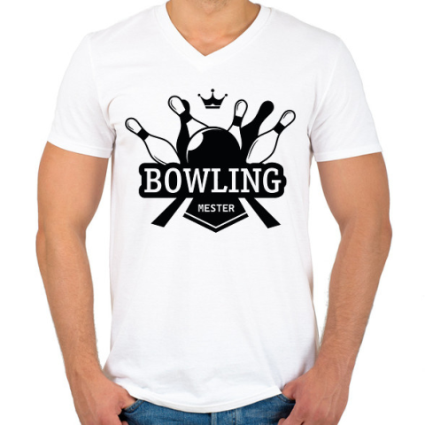 1 kép PRINTFASHION Bowling mester - Férfi V-nyakú póló - Fehér