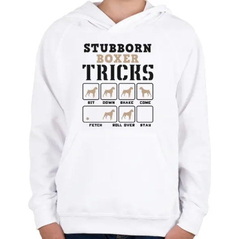 1 kép PRINTFASHION Boxer tricks - Gyerek kapucnis pulóver - Fehér