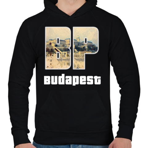 1 kép PRINTFASHION bp budapest - Férfi kapucnis pulóver - Fekete