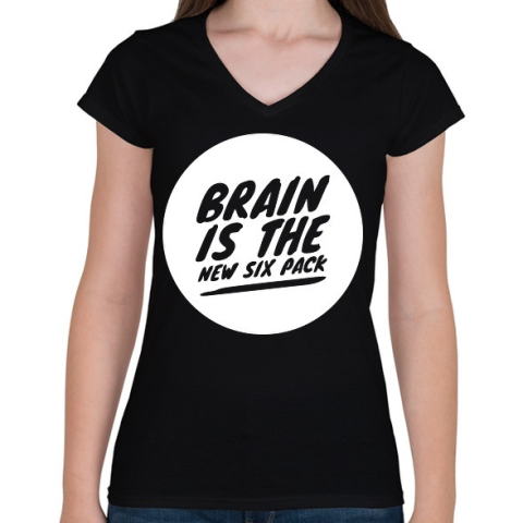 1 kép PRINTFASHION Brain is the new - Női V-nyakú póló - Fekete