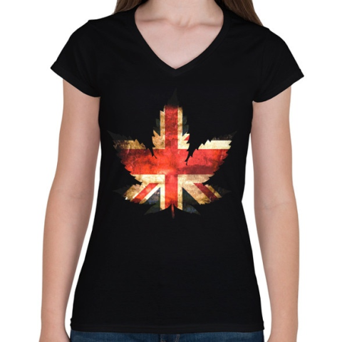 1 kép PRINTFASHION brit ganja - Női V-nyakú póló - Fekete