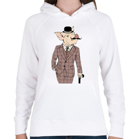 1 kép PRINTFASHION British style Pig - Női kapucnis pulóver - Fehér