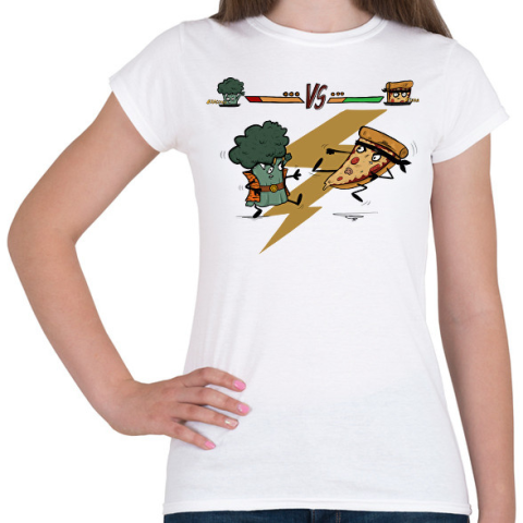 1 kép PRINTFASHION Brokkoli vs. Pizza - Női póló - Fehér