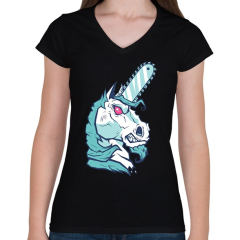 1 kép PRINTFASHION Brutál unikornis - Női V-nyakú póló - Fekete