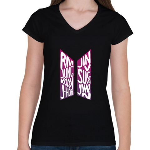 1 kép PRINTFASHION Bts logo - Női V-nyakú póló - Fekete