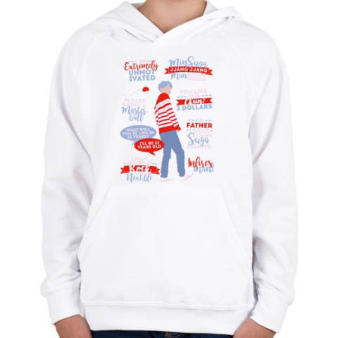 1 kép PRINTFASHION BTS Suga - Gyerek kapucnis pulóver - Fehér