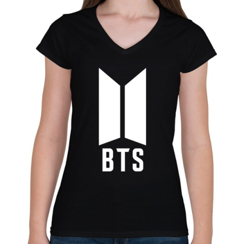 1 kép PRINTFASHION BTS white - Női V-nyakú póló - Fekete