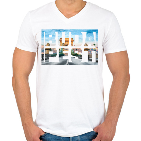 1 kép PRINTFASHION Budapest 2 - Férfi V-nyakú póló - Fehér