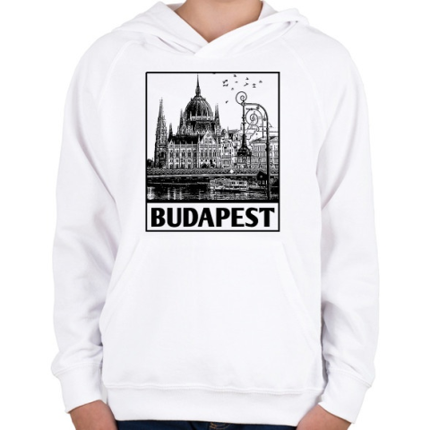 1 kép PRINTFASHION Budapest - Gyerek kapucnis pulóver - Fehér