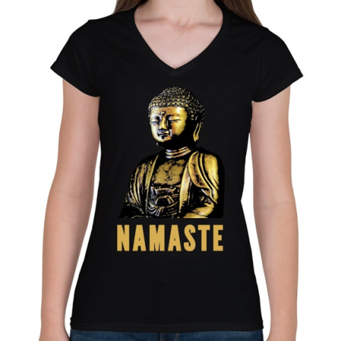 1 kép PRINTFASHION BUDHA2 - Női V-nyakú póló - Fekete