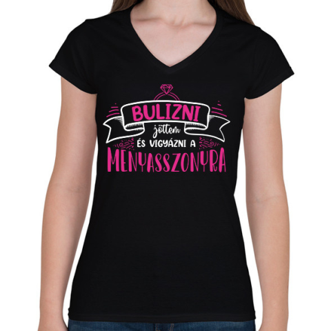 1 kép PRINTFASHION Bulizni jöttem - Csapat (white) - Női V-nyakú póló - Fekete
