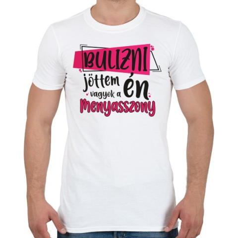 1 kép PRINTFASHION Bulizni jöttem én vagyok a menyasszony - Férfi póló - Fehér
