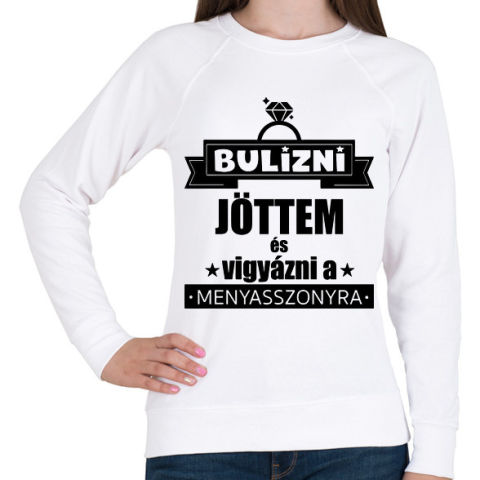 1 kép PRINTFASHION Bulizni jöttem és vigyázni a menyasszonyra - Női pulóver - Fehér