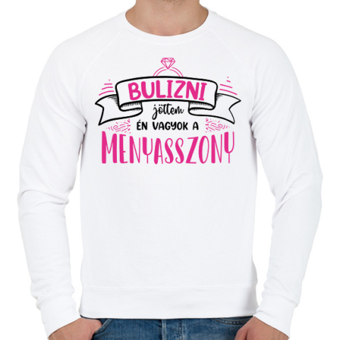 1 kép PRINTFASHION Bulizni jöttem - Menyasszon (black) - Férfi pulóver - Fehér