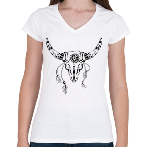 1 kép PRINTFASHION bull skull - Női V-nyakú póló - Fehér