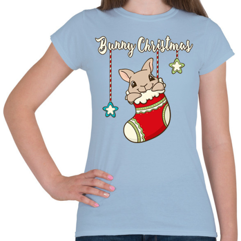 1 kép PRINTFASHION Bunny Christmas - Női póló - Világoskék