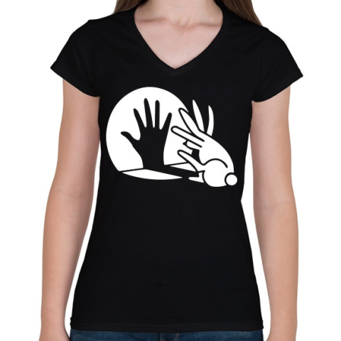 1 kép PRINTFASHION BUNNY - Női V-nyakú póló - Fekete
