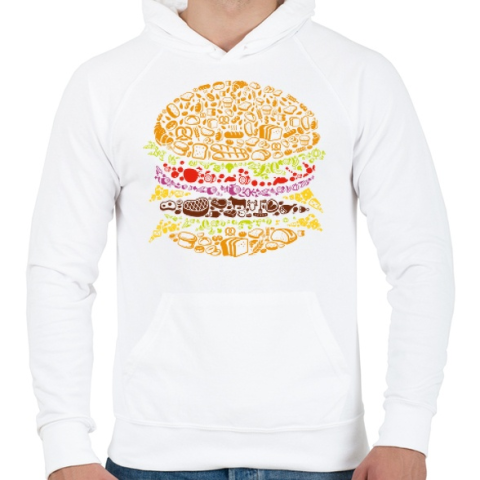 1 kép PRINTFASHION Burger - Férfi kapucnis pulóver - Fehér
