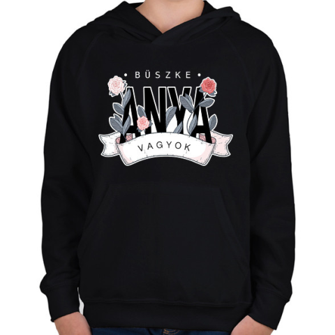 1 kép PRINTFASHION Büszke anya vagyok - Gyerek kapucnis pulóver - Fekete