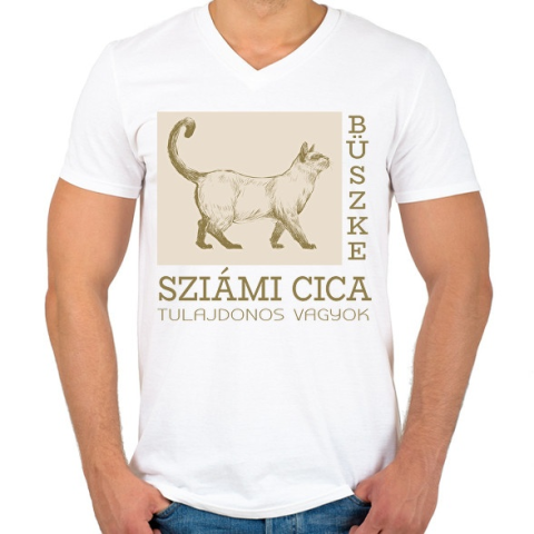 1 kép PRINTFASHION Büszke cica tulajdonos - Sziámi - Férfi V-nyakú póló - Fehér