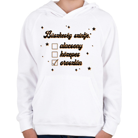 1 kép PRINTFASHION Büszkeség szintje - Gyerek kapucnis pulóver - Fehér