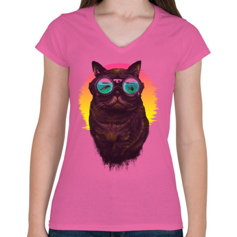 1 kép PRINTFASHION Búvár macska - Női V-nyakú póló - Rózsaszín