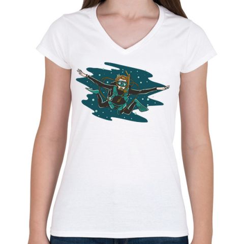 1 kép PRINTFASHION Búvár - Női V-nyakú póló - Fehér