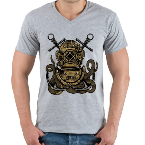 1 kép PRINTFASHION Búvár polip - Férfi V-nyakú póló - Sport szürke