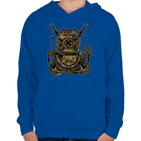 1 kép PRINTFASHION Búvár polip - Gyerek kapucnis pulóver - Királykék