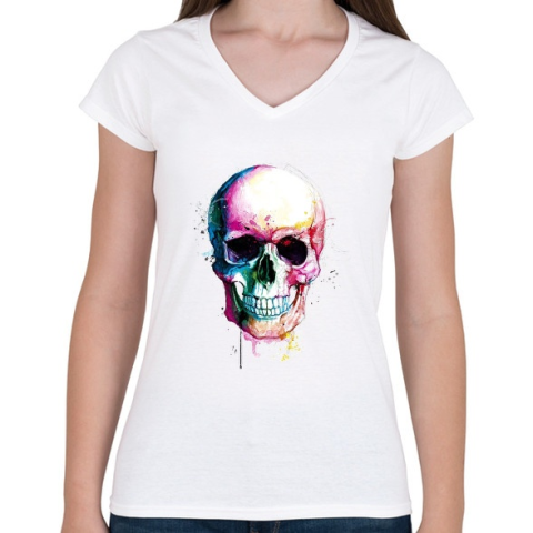 1 kép PRINTFASHION Calavera Koponya - Női V-nyakú póló - Fehér