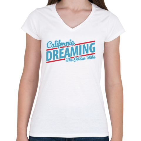 1 kép PRINTFASHION California Dreaming - The Golden State - Női V-nyakú póló - Fehér