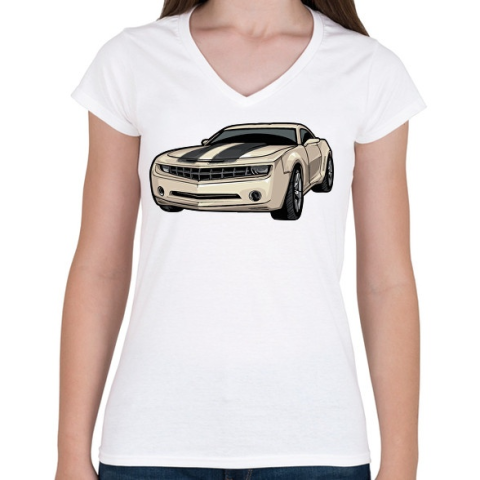 1 kép PRINTFASHION Camaro - Női V-nyakú póló - Fehér