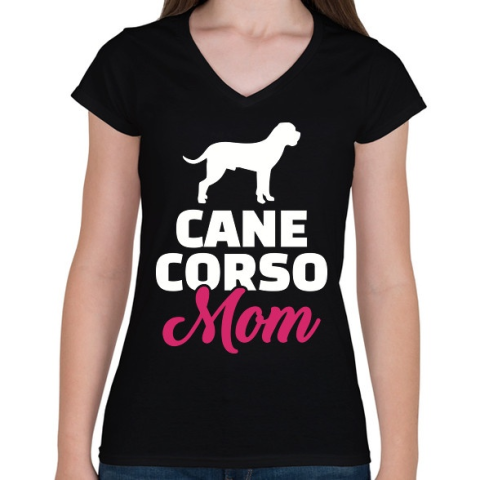 1 kép PRINTFASHION Cane Corso Mom - Női V-nyakú póló - Fekete