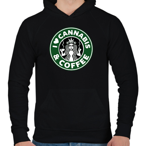 1 kép PRINTFASHION Cannabis and coffee - Férfi kapucnis pulóver - Fekete