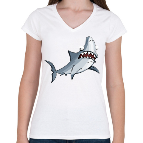 PRINTFASHION Cápa - Női V-nyakú póló - Fehér női póló 1 kép