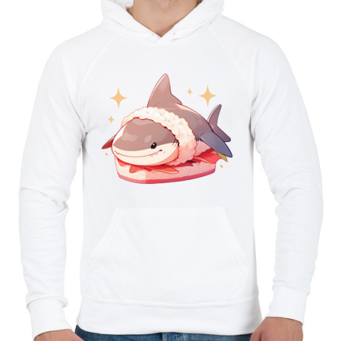 1 kép PRINTFASHION Cápa sushi - Férfi kapucnis pulóver - Fehér