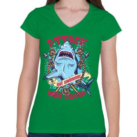 1 kép PRINTFASHION Cápatámadás - Női V-nyakú póló - Zöld