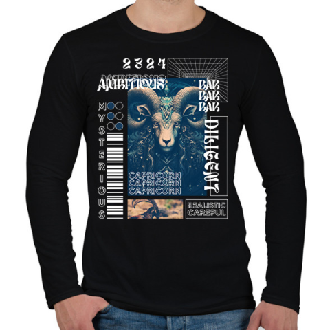 1 kép PRINTFASHION Capicorn - Streetwear style - Férfi hosszú ujjú póló - Fekete