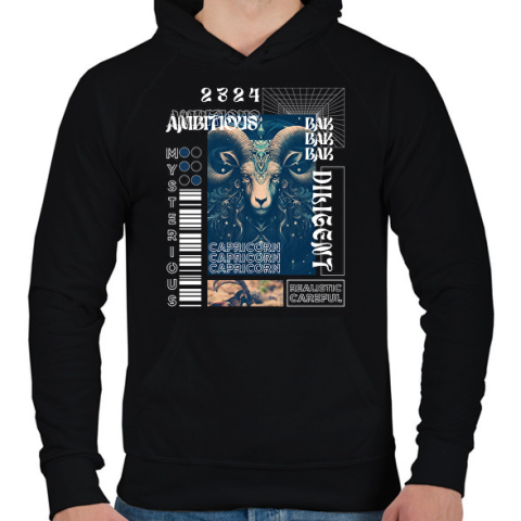 1 kép PRINTFASHION Capicorn - Streetwear style - Férfi kapucnis pulóver - Fekete