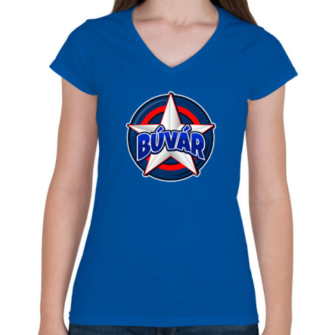 1 kép PRINTFASHION CAPTAIN BÚVÁR - Női V-nyakú póló - Királykék