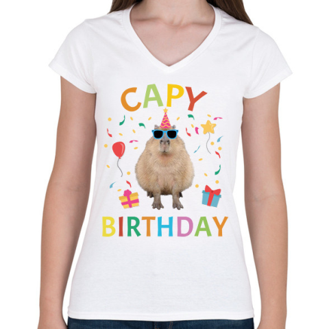 1 kép PRINTFASHION Capy Birthday party - Női V-nyakú póló - Fehér